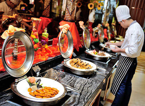 酒店擁有風(fēng)格迥異的各式餐廳:“世紀(jì)廳”大型宴會(huì)廳豪華典雅,是舉辦各類活動(dòng)及婚宴、壽宴、滿月宴的首選; 32間中餐包廂富麗堂皇,是您宴請(qǐng)貴賓的理想去處,您可以品嘗到原汁原味的各式海鮮;大堂吧供應(yīng)價(jià)廉物美的各式飲品、茶點(diǎn),是賓客休閑會(huì)友的好去處。